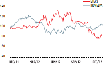 PERFORMANCE OF ETER3 SHARE VS. IBOVESPA INDEX |