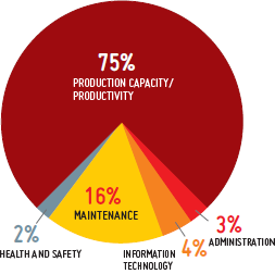 In 2012, the capital expenditure total amounted to R$69.4 million, being R$21 million on the purchase of machinery and equipment and trucks for the mining company, R$33.2 million mainly for maintenance and modernization of the industrial park, R$13.6 million referring to a capital injection into Companhia Sulamericana de Cerâmica (CSC) for the construction of the new vitreous chinaware plant and R$1.6 million for the acquisition of licences and switching over to the new SAP version.