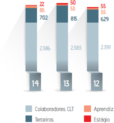Para intensificar a qualificação de seus colaboradores, a Companhia promove uma série de ações. Em 2014, foram ministradas 103.800 horas de treinamentos, ou seja, 44 horas por colaborador, o que exigiu investimentos de R$ 1,3 milhão. GRI G4-LA9