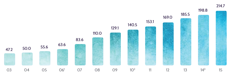 The increase in the user base resulted in billing of the following volumes: 144,800 m3 of water and 78.4 m3 of wastewater, which respectively account for year-over-year growth of 11.6% and 5.7%.